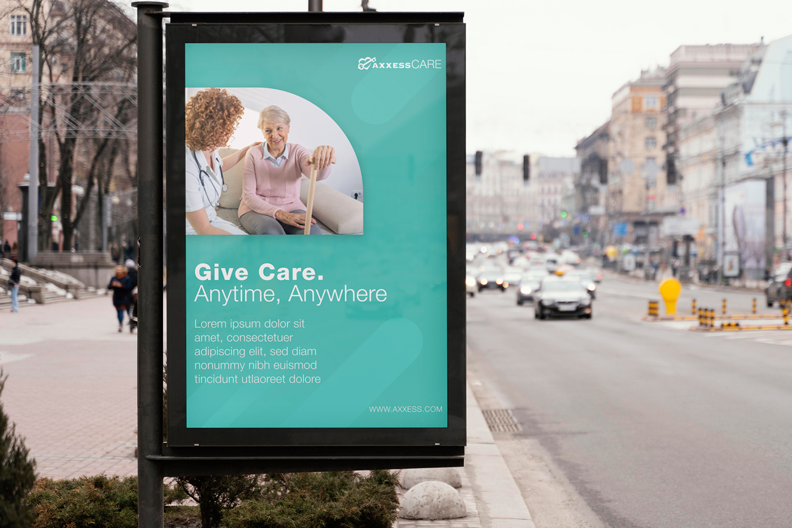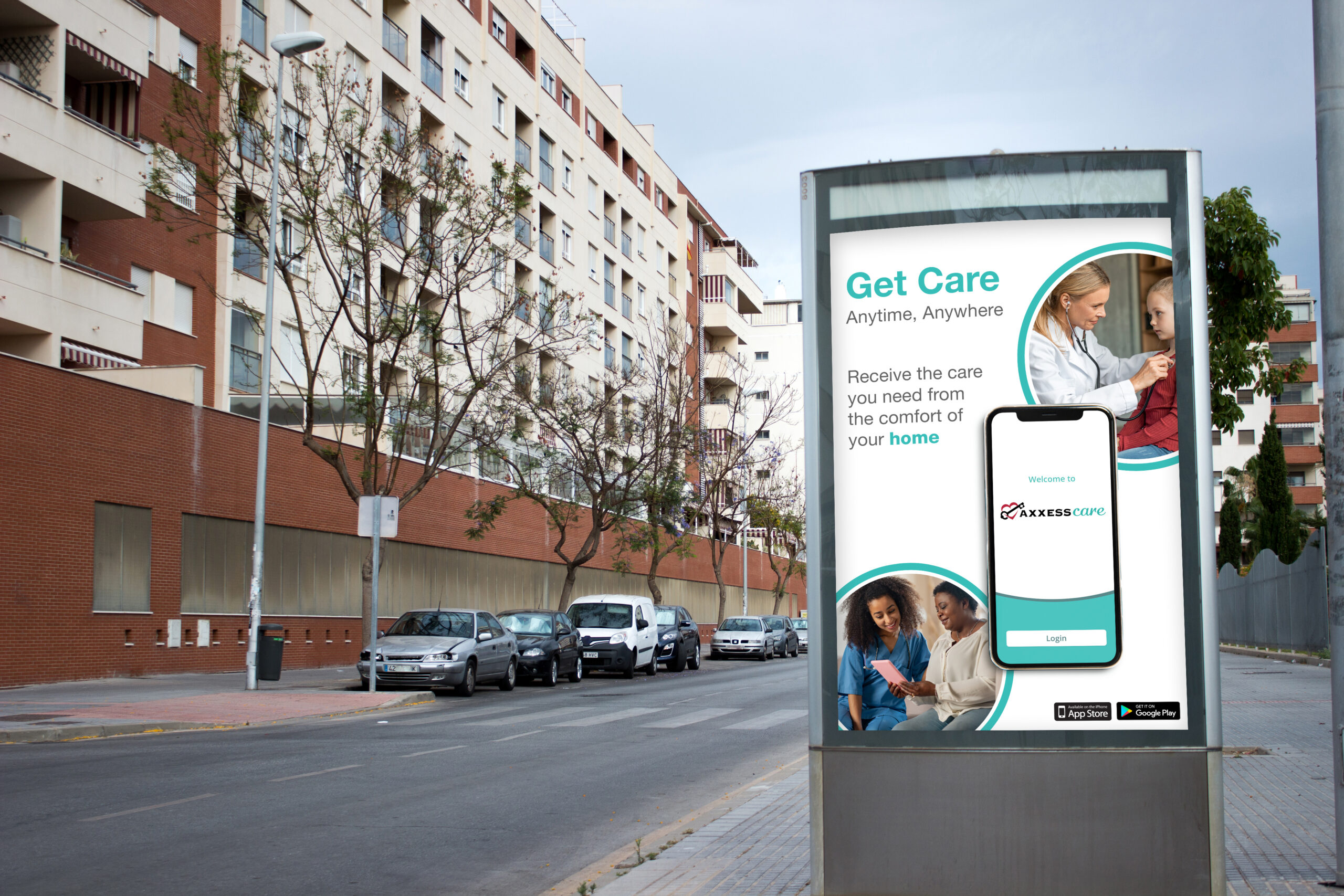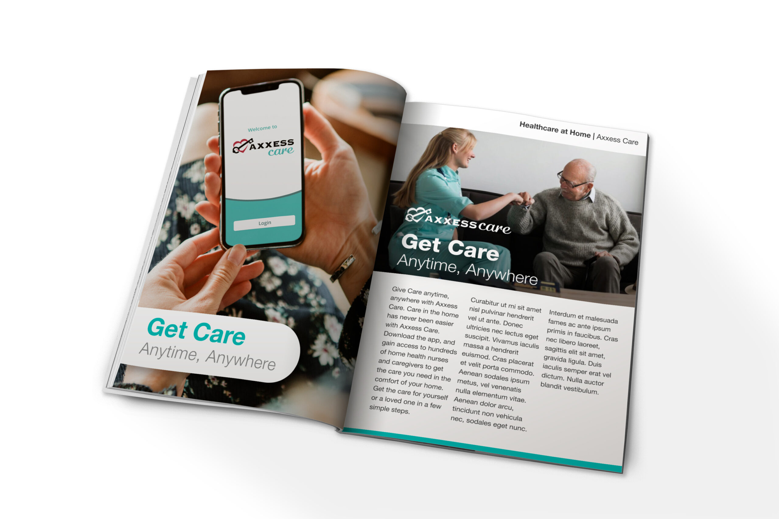 Key Features: The visual identity for Axxess Care included a logo for the new consumer segment, product color and typography, the app icon, and marketing mockups to show the brand in action. I also created a set of screenshot graphics for the app which are shown in the Apple App Store and Google Playstore.