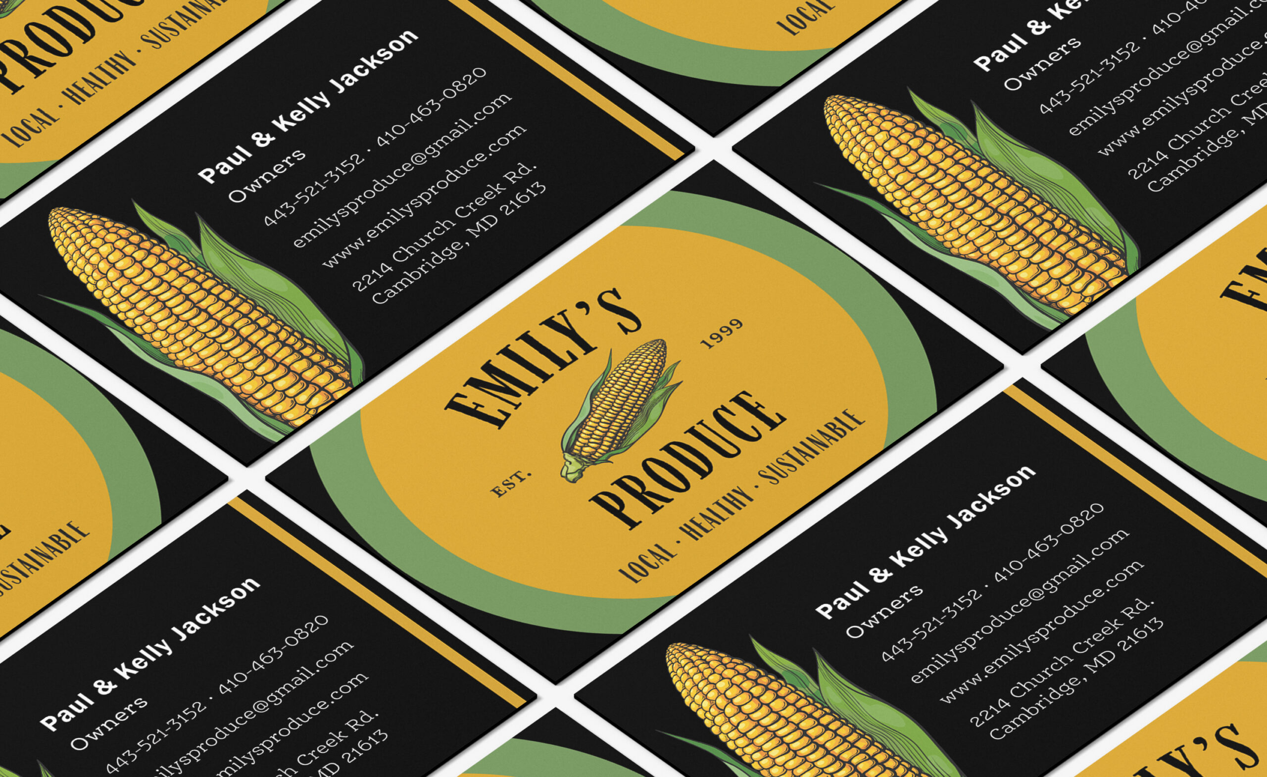 Above: Redesigned Emily’s Produce business cards.