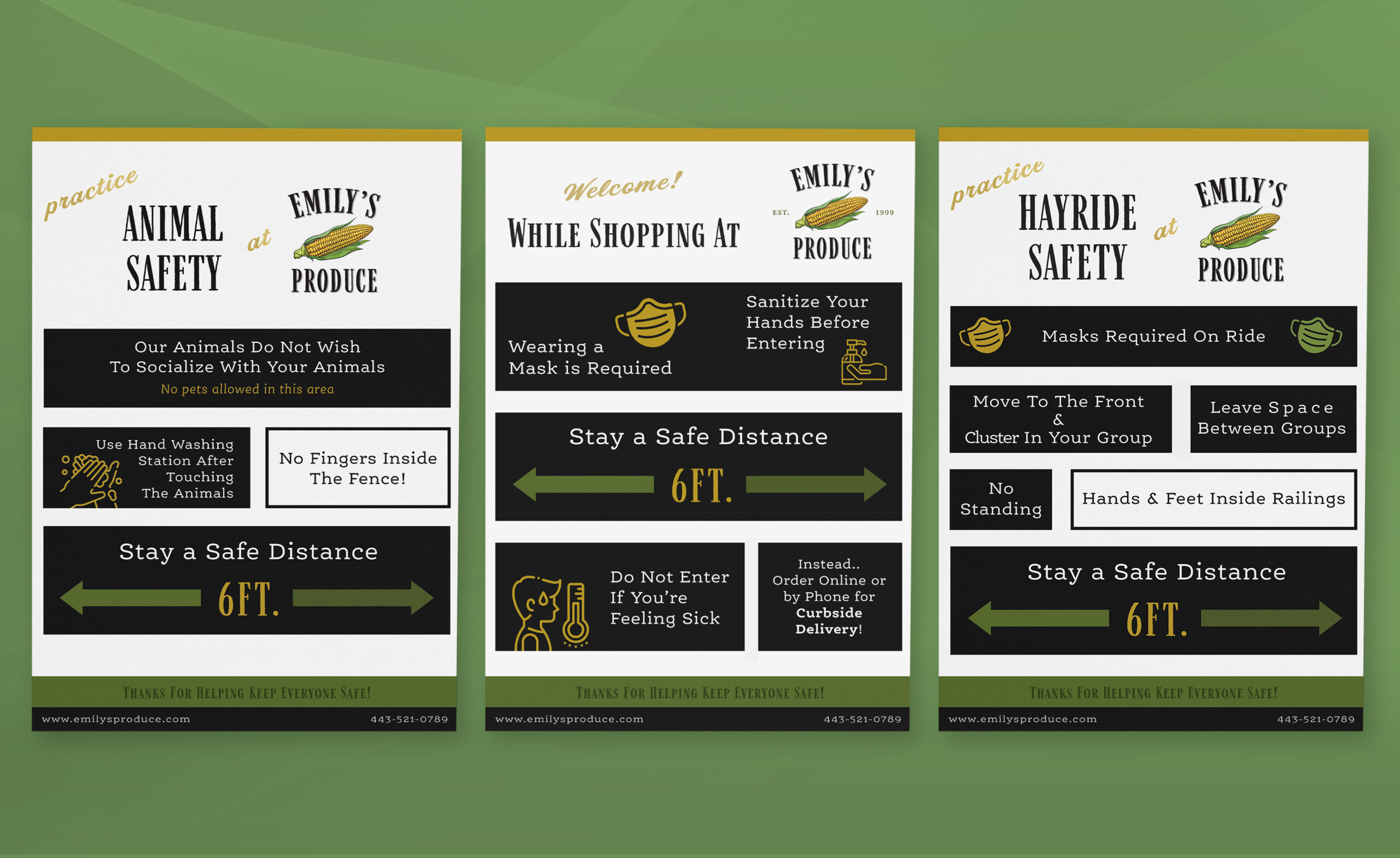 Key Features: The new visual identity for Emily’s included a refresh to the current logo, updated brand typography and color palette, and a redesigned WordPress website. I also created various print collateral pieces, including new company business cards and market safety posters.